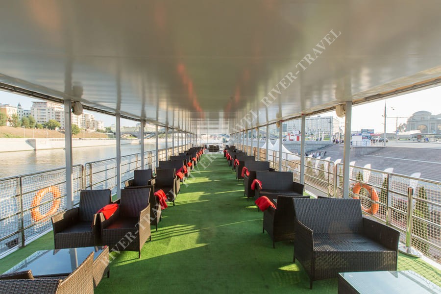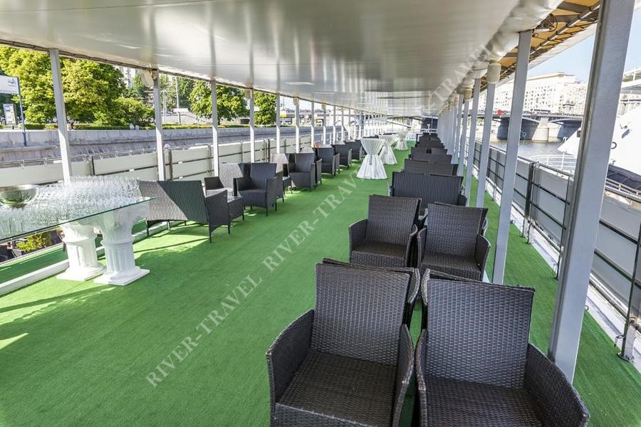 Эксклюзивный двухпалубный лайнер «Ривер Палас» по праву входит в группу теплоходов премиум класса. Впечатляющая по размерам верхняя палуба позволяет проводить масштабные дискотеки, концерты, развлекательные мероприятия в формате open air, организовывать барбекю или экскурсии.